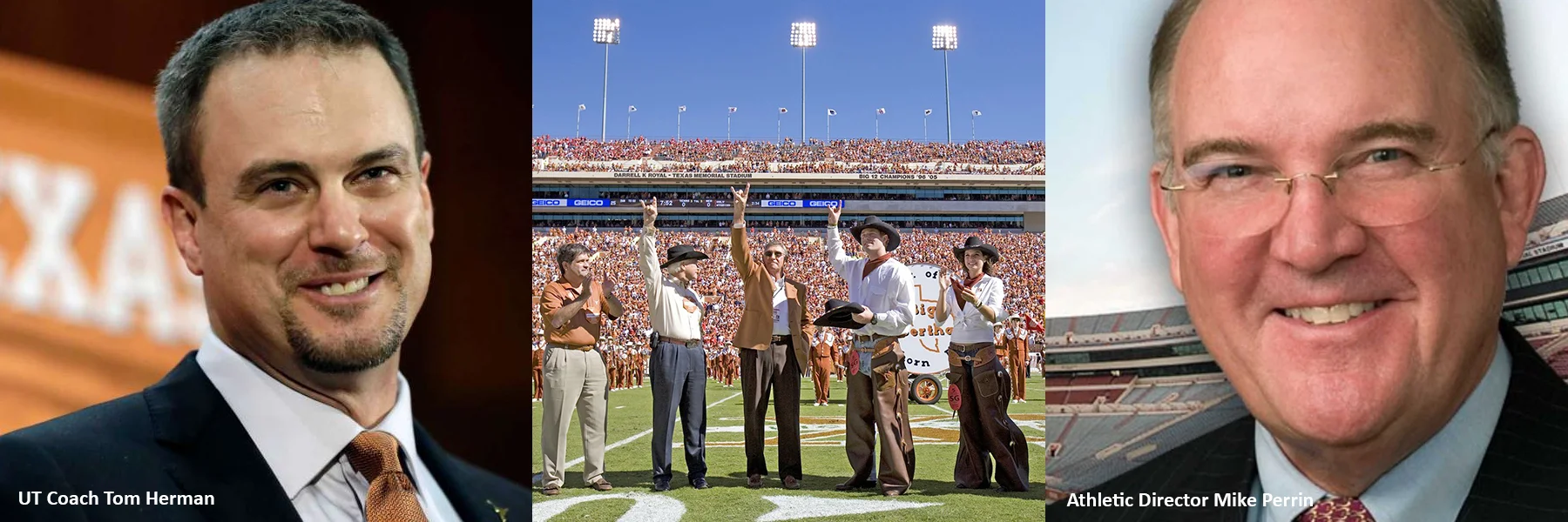 Please join us at the Spring Game this weekend on Saturday, April 15th for a special presentation. President Ace Schlameus and current Foreman Eli Sterbcow, along with Athletic Director/Texas Cowboy Old Man, Mike Perrin, will be presenting Coach Tom Herman with a Texas Cowboys' hat before the game.